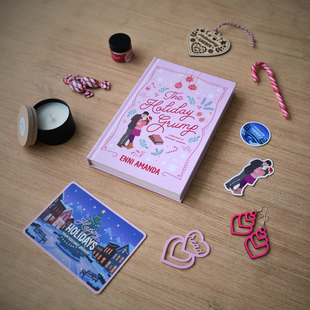 The Holiday Grump is part of the Christmas at Hideaway Harbor series of six spicy romantic comedies. The books are interconnected standalones and can be read in any order.